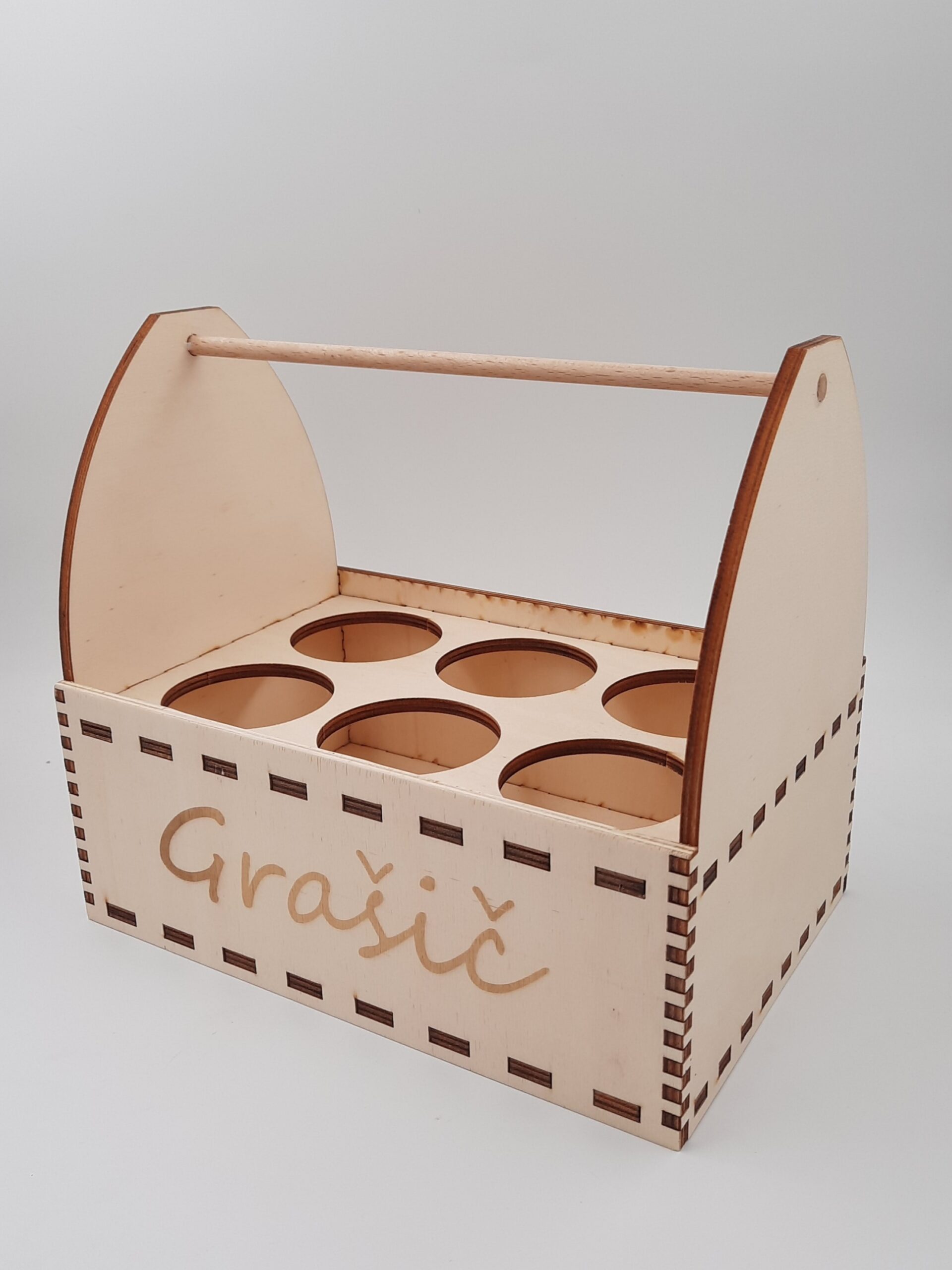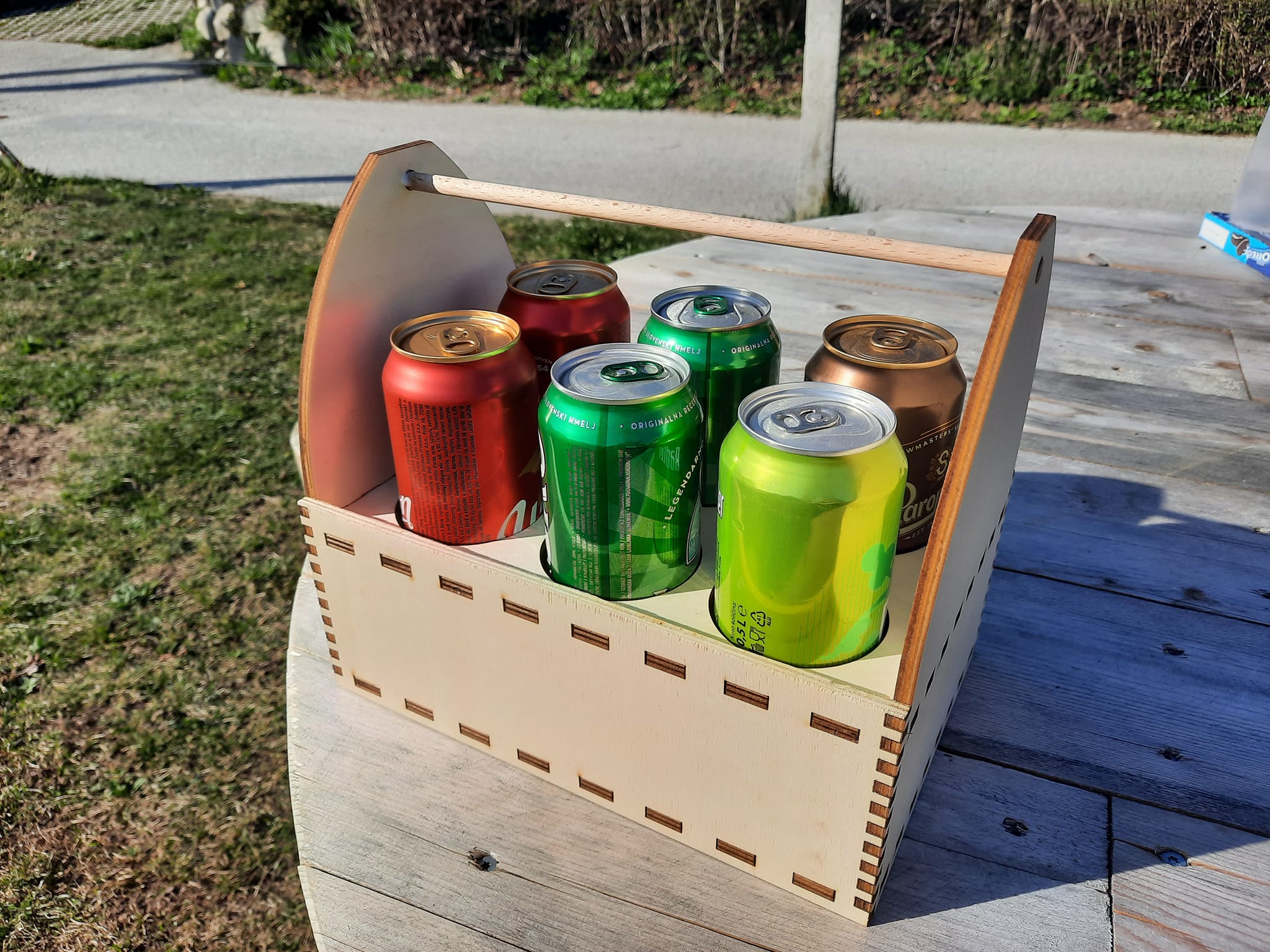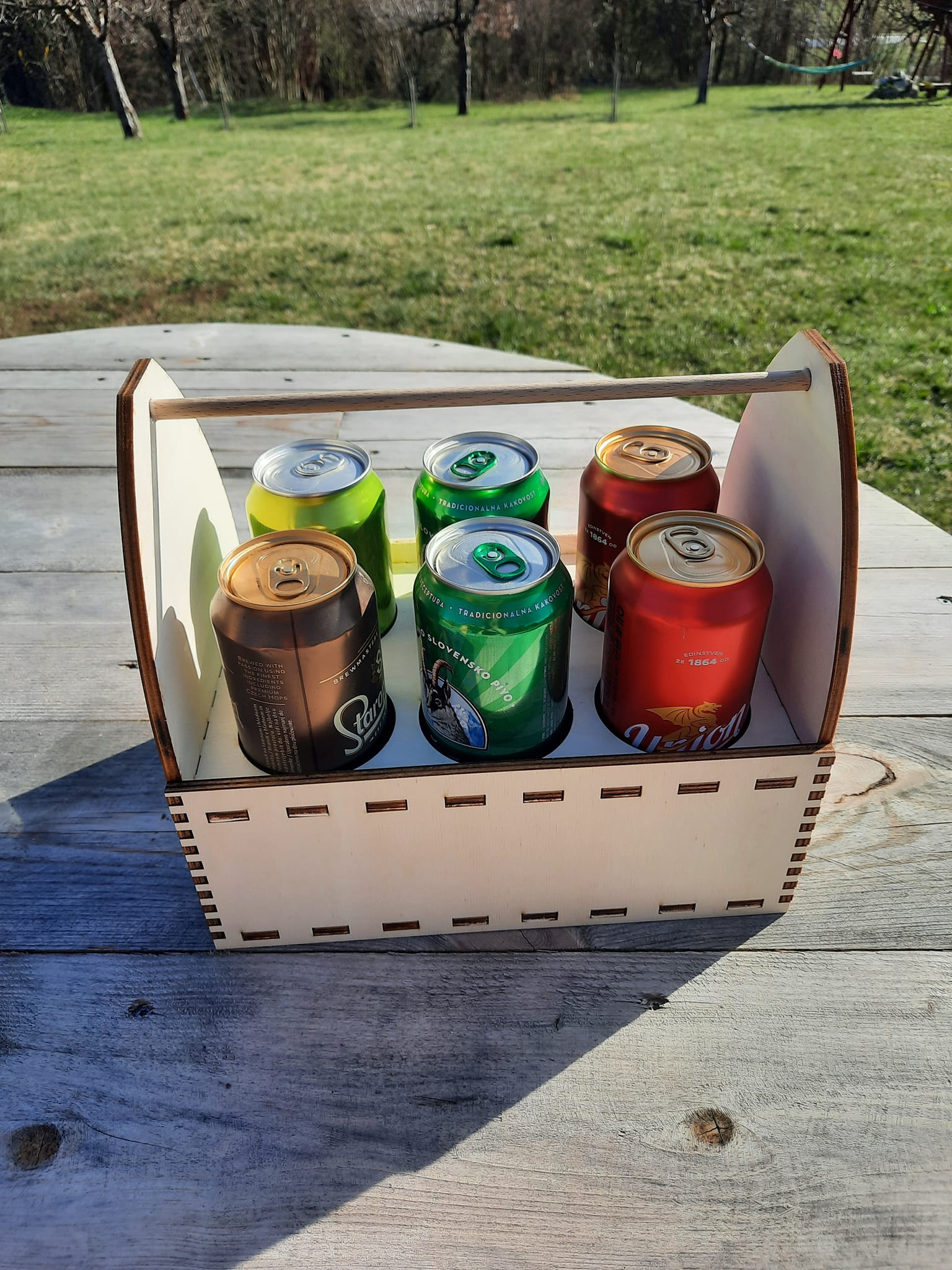 Lesena košara za 6 pločevink. Možnost gravure. Odlično darilo za ljubitelje piva.